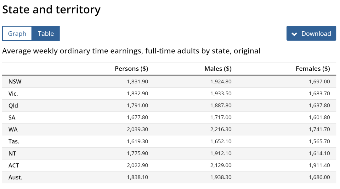 澳大利亞各州平均工資揭露,平均每周稅前收入為 1,838 澳元?ABS給你真實數據!