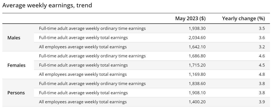 ABS公布的最新薪資洞察數據顯示,澳洲企業已經認識到了這一需求:澳洲平均周薪已從去年的1,769.80澳元增至2023年的1,838.10澳元。
