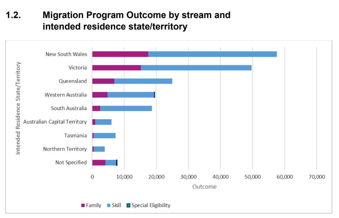 上個財年發放蕞多的簽證是配偶簽證,其次是雇主擔保,偏遠地區擔保189獨立技術移民簽證以及州擔保。