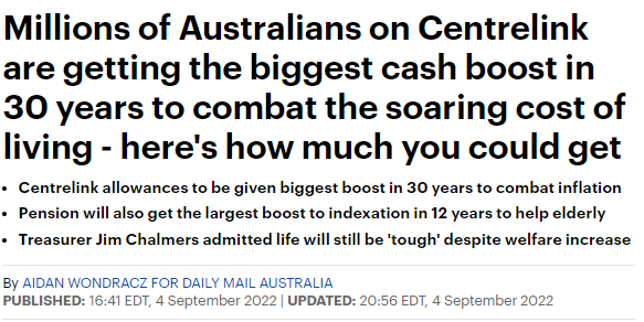 雖然澳洲因通貨膨脹,各項生活成本都不斷上漲,人們的生活壓力也隨之越來越大,但是澳洲政府也在不斷提高各種福利補助,幫助澳洲人緩解壓力。