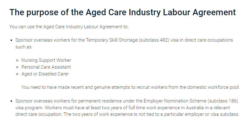 1、直接給海外符合要求的養老護理勞動工人提供澳洲482工作簽證;